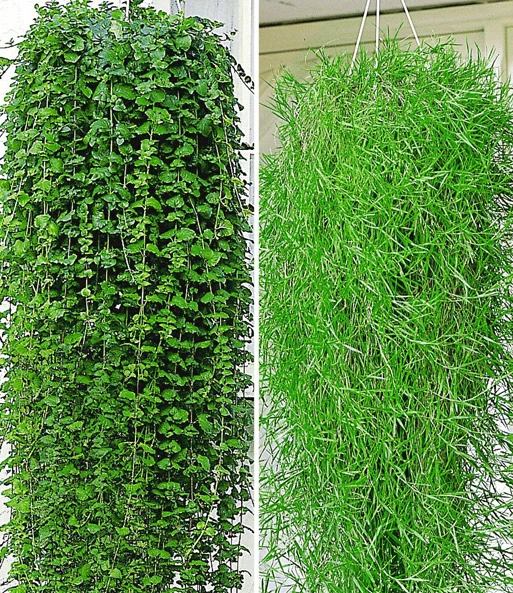 De balkon collectie bestaande uit 3 planten geurende Indian Mint en 1 plant hangende bamboe Green Twist.